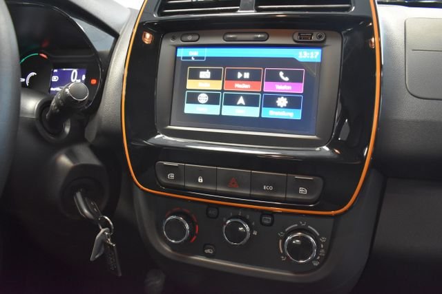 Airbag Beifahrerseite , Airbag Fahrerseite , Anti-Blockier-System (ABS) , Audio-Navigationssystem mit Touchscreen-Farbdisplay (Media Nav Evolution) , Freisprecheinrichtung Bluetooth , Touchscreen-Farbdisplay (7,0 Zoll) , Automatische Fahrlichtschaltung / Lichtsensor , Außenspiegel elektr. verstellbar , Bordcomputer , Bremsassistent , Dekor-/Zierstreifen Orange , Designelemente Stoßfänger Orange , Eco Mode (Fahrmodusschalter) , Einparkhilfe hinten mit Rückfahrkamera , Elektromotor 33 kW (cont. 19 kW) , Elektron. Stabilitäts-Programm (ESP) , Fahrassistenz-System: Aktiver Notbrems-Assistent , Fahrassistenz-System: Berganfahr-Assistent (HSA) , Fahrassistenz-System: Sicherheitssystem mit automatischem Notruf (ERA GLONASS / eCall) , Fensterheber elektrisch vorn , Geschwindigkeits-Begrenzeranlage , Getriebe für Elektrofahrzeug , Isofix-Aufnahmen für Kindersitz an Rücksitz , Karosserie: 5-türig , Klimaanlage , Kopf-Airbag-System (Windowbag) vorn + hinten , Ladekabel mit Typ2/Typ2 (Mode 3) , Metallic-Lackierung , Radzierkappen , Reifendruck-Kontrollsystem , Reserverad in Fahrbereifung , Rücksitzbank (2.Reihe) einteilig, klappbar , Seitenairbag vorn , Sitzbezug / Polsterung: Kunstleder / Stoff , Tagfahrlicht LED , Türverriegelung automatisch , Zentralverriegelung mit Fernbedienung